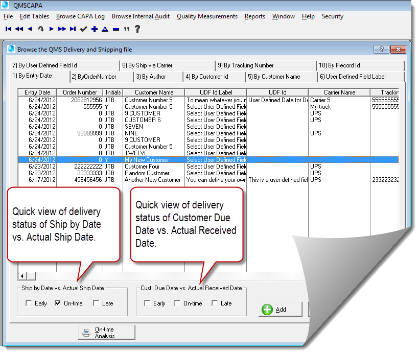 •A delivery log table •An on-time delivery calculator form •An on-time delivery analysis report •OTD Batch Entry option to enter OTD data from external programs.